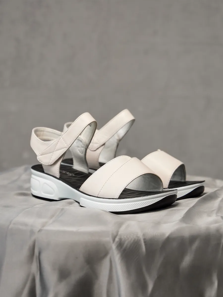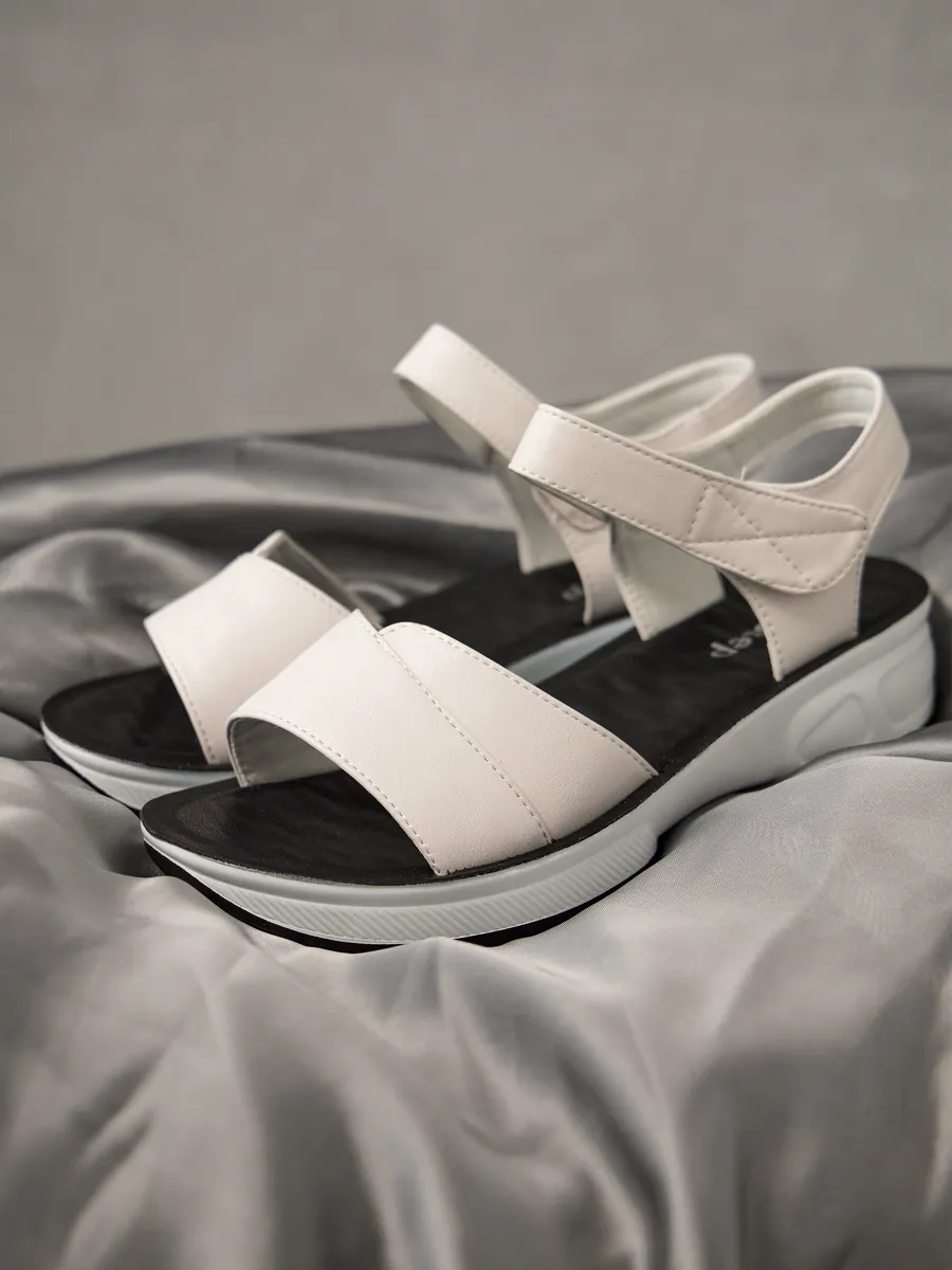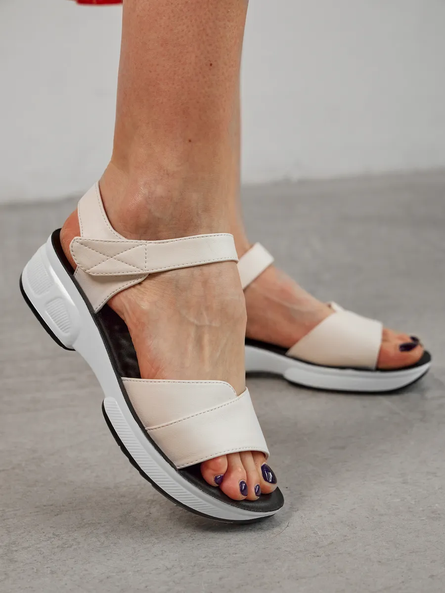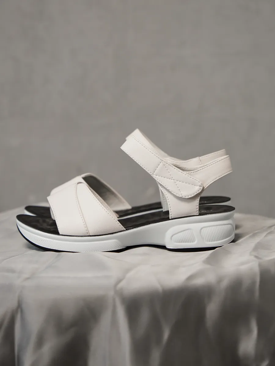 Лето — время лёгкости, свободы и ярких образов. Женские босоножки на платформе — стильная модель сочетает в себе последние тренды 2025 года, удобство и универсальность. Выполненные из композитной кожи, они сочетают в себе элегантность, удобство и модные тренды. Лёгкий и стильный дизайн делает их универсальной обувью для женщин, которые ценят комфорт и эстетику. Мягкая стелька из экокожи идеально подстраивается под ногу, создавая ощущение комфорта при каждом шаге. Открытый носок и пятка позволяют ногам дышать, а удобные ремешки на липучках обеспечивают быструю фиксацию и регулируемую посадку. Модель оснащена гибкой и лёгкой подошвой, которая добавляет устойчивости и подходит как для повседневных прогулок, так и для длительных поездок, так как благодаря хорошим амортизирующим свойствам снижает нагрузку на стопу. Натуральные материалы верха делают босоножки прочными и долговечными, а их белый цвет придаёт элегантность и легко сочетается с летним гардеробом. Эти босоножки станут отличным дополнением к повседневному образу. Благодаря стильному дизайну и удобной посадке они отлично смотрятся с летними платьями, юбками, шортами и лёгкими брюками. Добавьте в свою коллекцию модные женские босоножки на платформе и наслаждайтесь комфортом, лёгкостью и элегантностью!