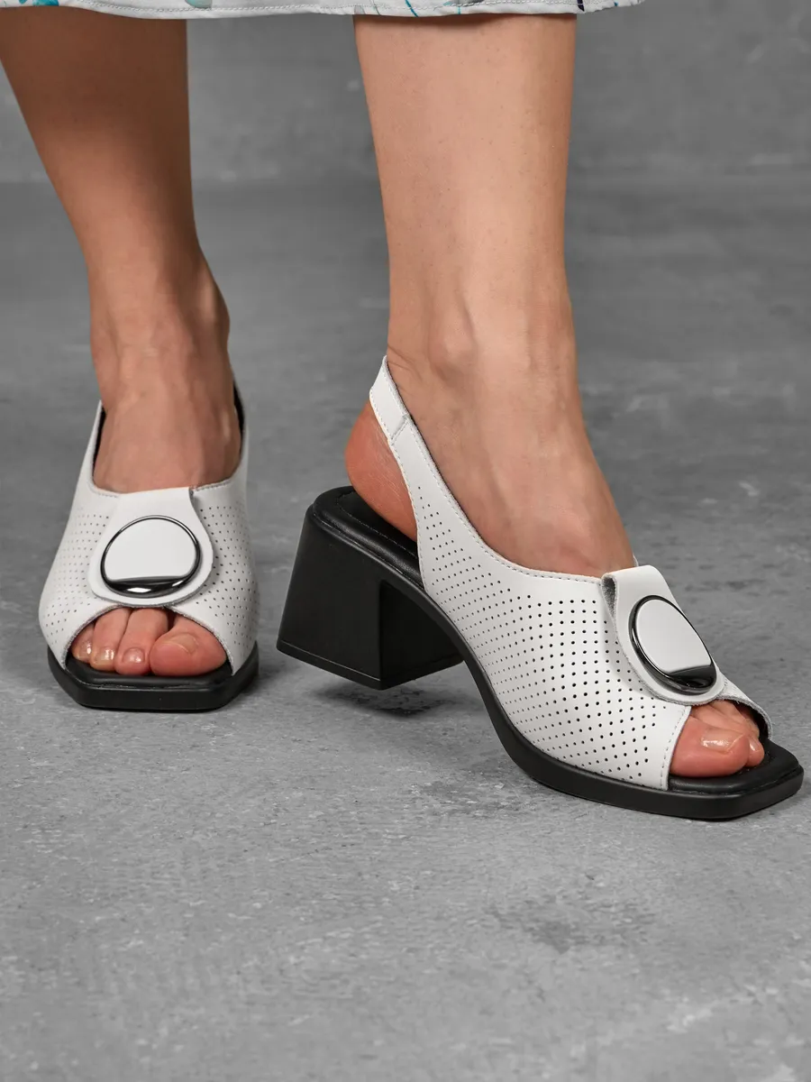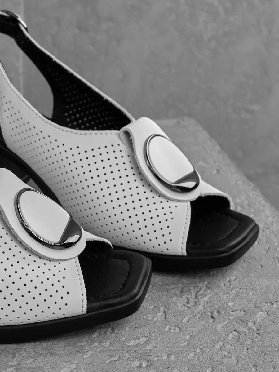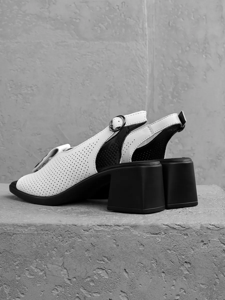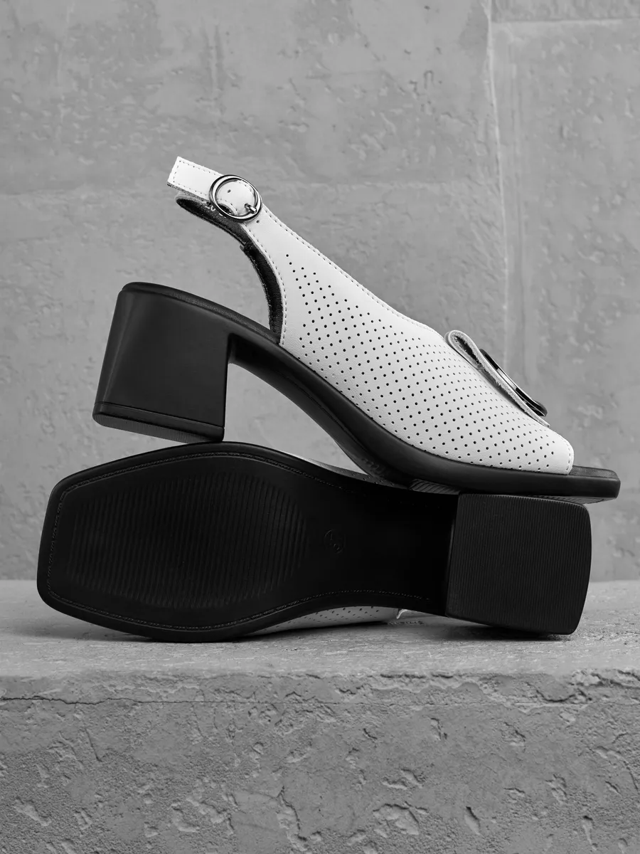 Белый цвет — один из самых востребованных летом, он легко сочетается с одеждой в светлых, пастельных и даже ярких оттенках. Эти женские перфорированные слингбэки великолепно смотрятся с лёгкими платьями, юбками и деловыми костюмами, дополняя как офисный, так и праздничный образ.