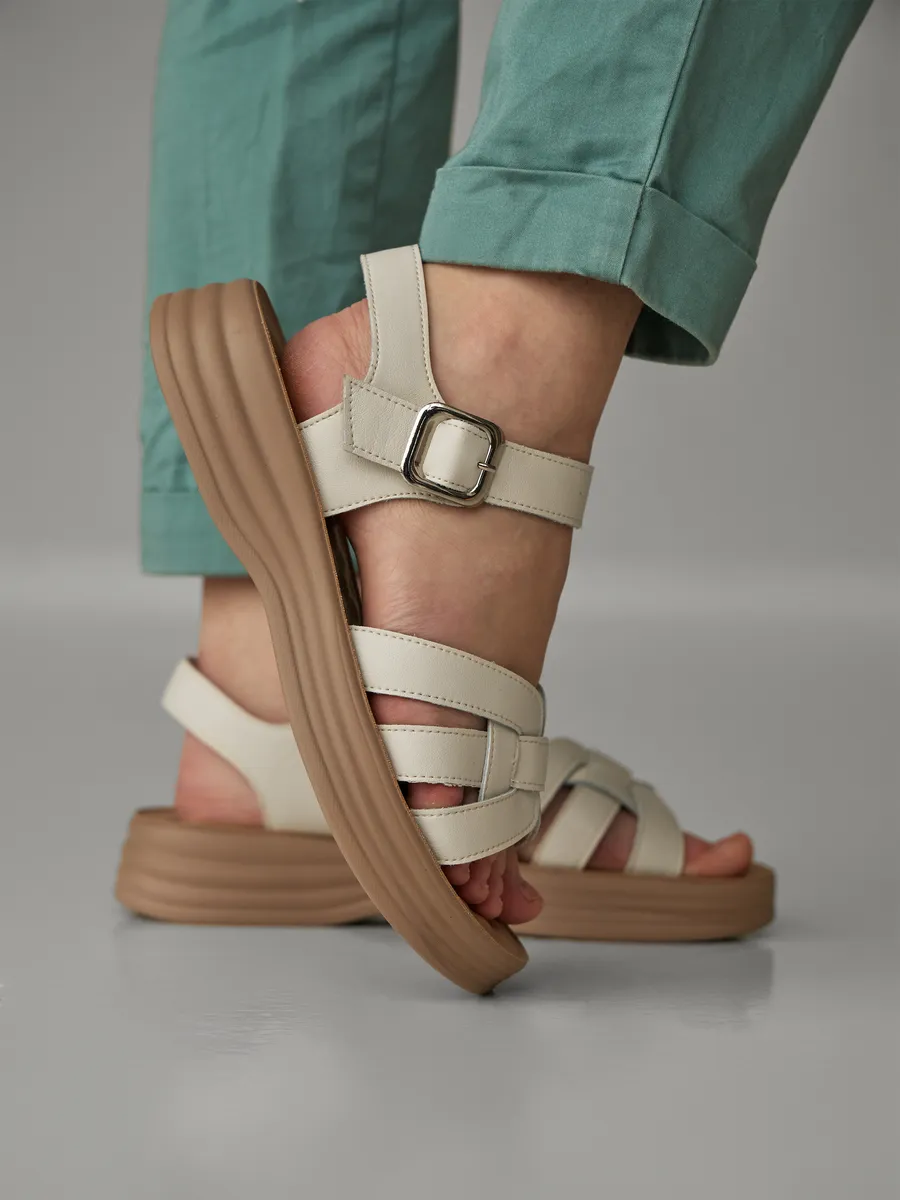 Эта модель из натуральной кожи создана для тех, кто стремится к гармонии между стилем и практичностью. Бежевый цвет делает босоножки универсальными, позволяя им легко сочетаться с платьями, юбками, сарафанами и лёгкими брюками, добавляя образу нотку свежести и элегантности. Лаконичный дизайн с открытым носком и пяткой обеспечивает естественную вентиляцию, предотвращая перегрев ног даже в самые жаркие дни.