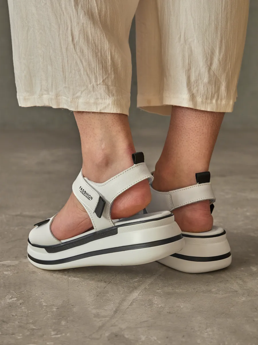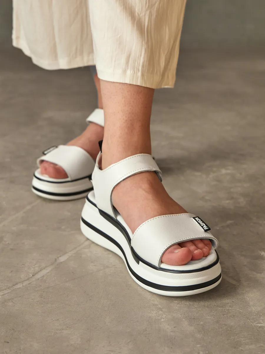 Лето — время лёгкости, свободы и ярких образов. Женские босоножки на платформе — стильная модель сочетает в себе последние тренды 2025 года, удобство и универсальность. Выполненные из композитной кожи, они сочетают в себе элегантность, удобство и модные тренды. Лёгкий и стильный дизайн делает их универсальной обувью для женщин, которые ценят комфорт и эстетику. Мягкая стелька из экокожи идеально подстраивается под ногу, создавая ощущение комфорта при каждом шаге. Открытый носок и пятка позволяют ногам дышать, а удобные ремешки на липучках обеспечивают быструю фиксацию и регулируемую посадку. Модель оснащена гибкой и лёгкой подошвой, которая добавляет устойчивости и подходит как для повседневных прогулок, так и для длительных поездок, так как благодаря хорошим амортизирующим свойствам снижает нагрузку на стопу. Натуральные материалы верха делают босоножки прочными и долговечными, а их белый цвет придаёт элегантность и легко сочетается с летним гардеробом. Эти босоножки станут отличным дополнением к повседневному образу. Благодаря стильному дизайну и удобной посадке они отлично смотрятся с летними платьями, юбками, шортами и лёгкими брюками. Добавьте в свою коллекцию модные женские босоножки на платформе и наслаждайтесь комфортом, лёгкостью и элегантностью!