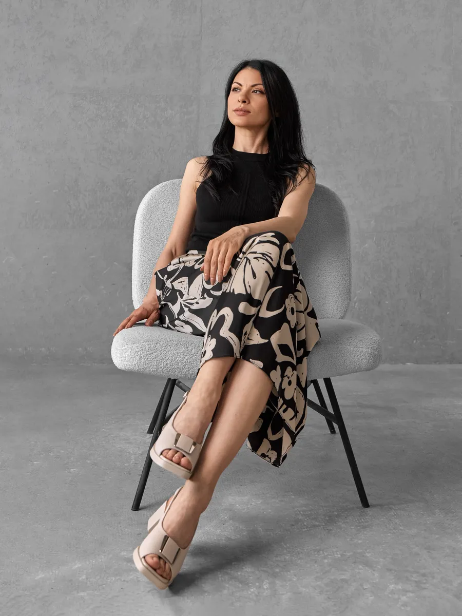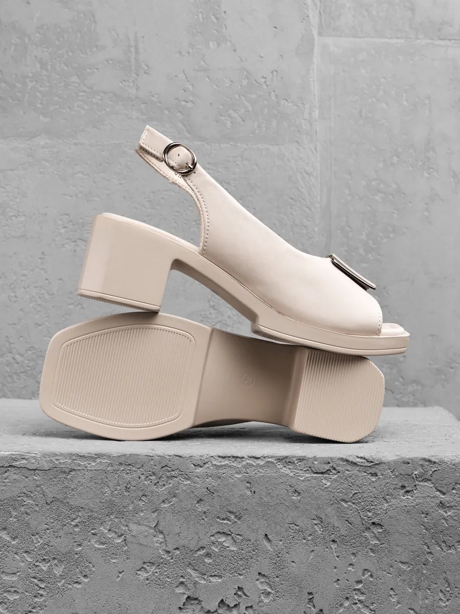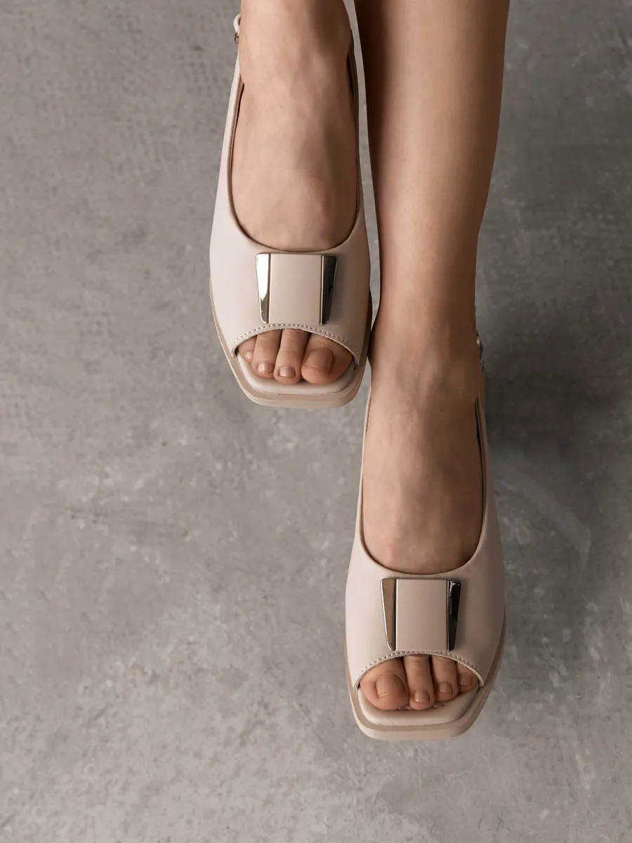 Бежевый цвет — один из самых востребованных летом, он легко сочетается с одеждой в светлых, пастельных и даже ярких оттенках. Эти женские слингбэки великолепно смотрятся с лёгкими платьями, юбками и деловыми костюмами, дополняя как офисный, так и праздничный образ.