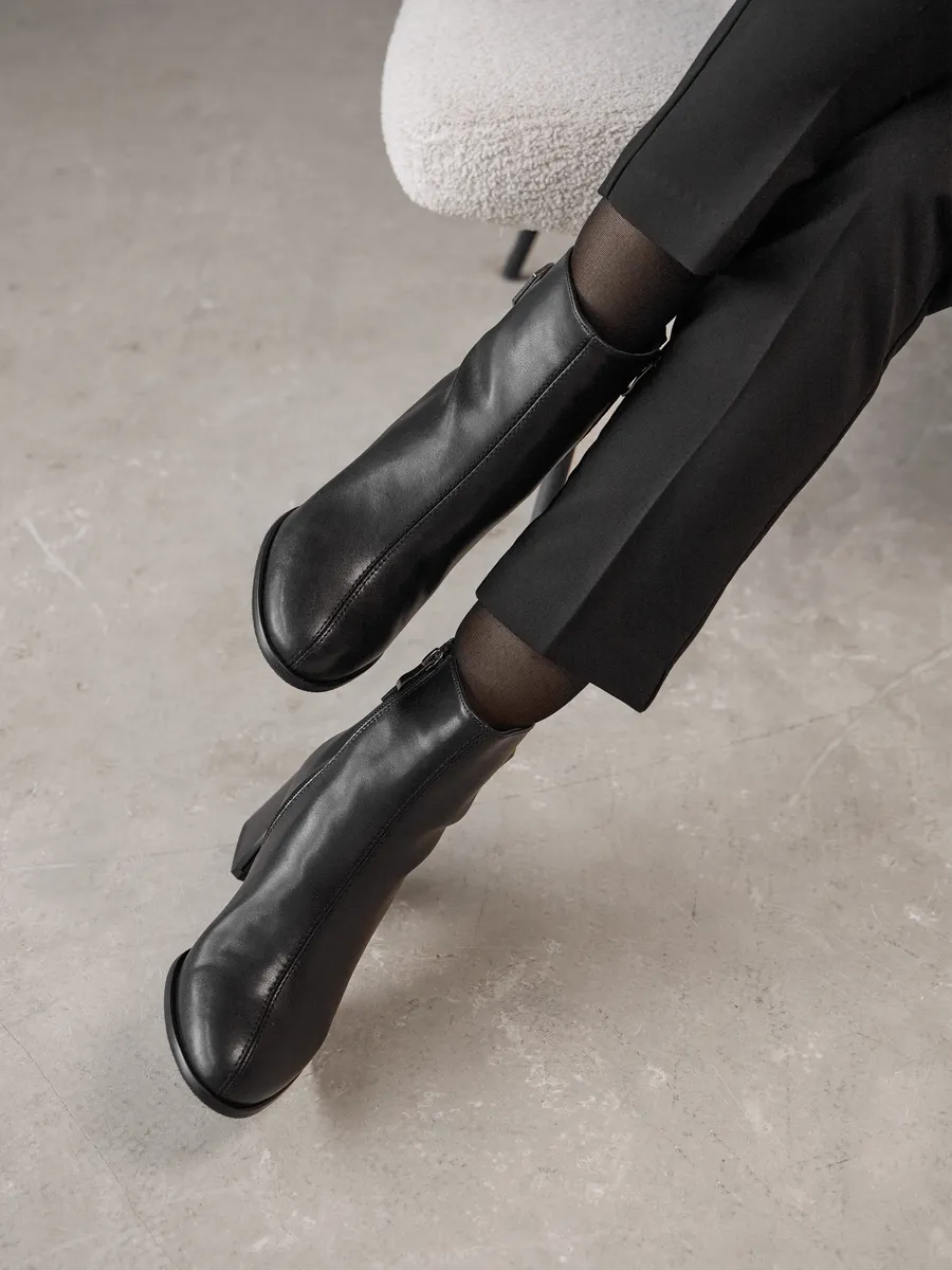 Эта удобная обувь на плоской резиновой подошве отличается прекрасной амортизацией ударов, что делает каждый шаг лёгким и приятным. Гибкий, прочный материал и низкий каблук обеспечивают комфорт даже при длительной ходьбе. Благодаря этому ботильоны подходят как для повседневных прогулок, так и для нарядных случаев, удачно сочетая моду и практичность.