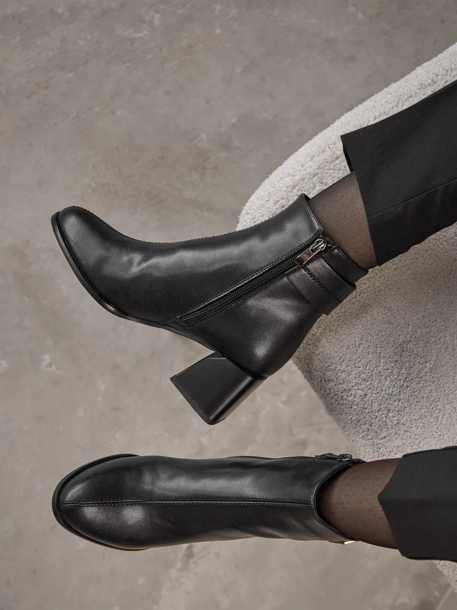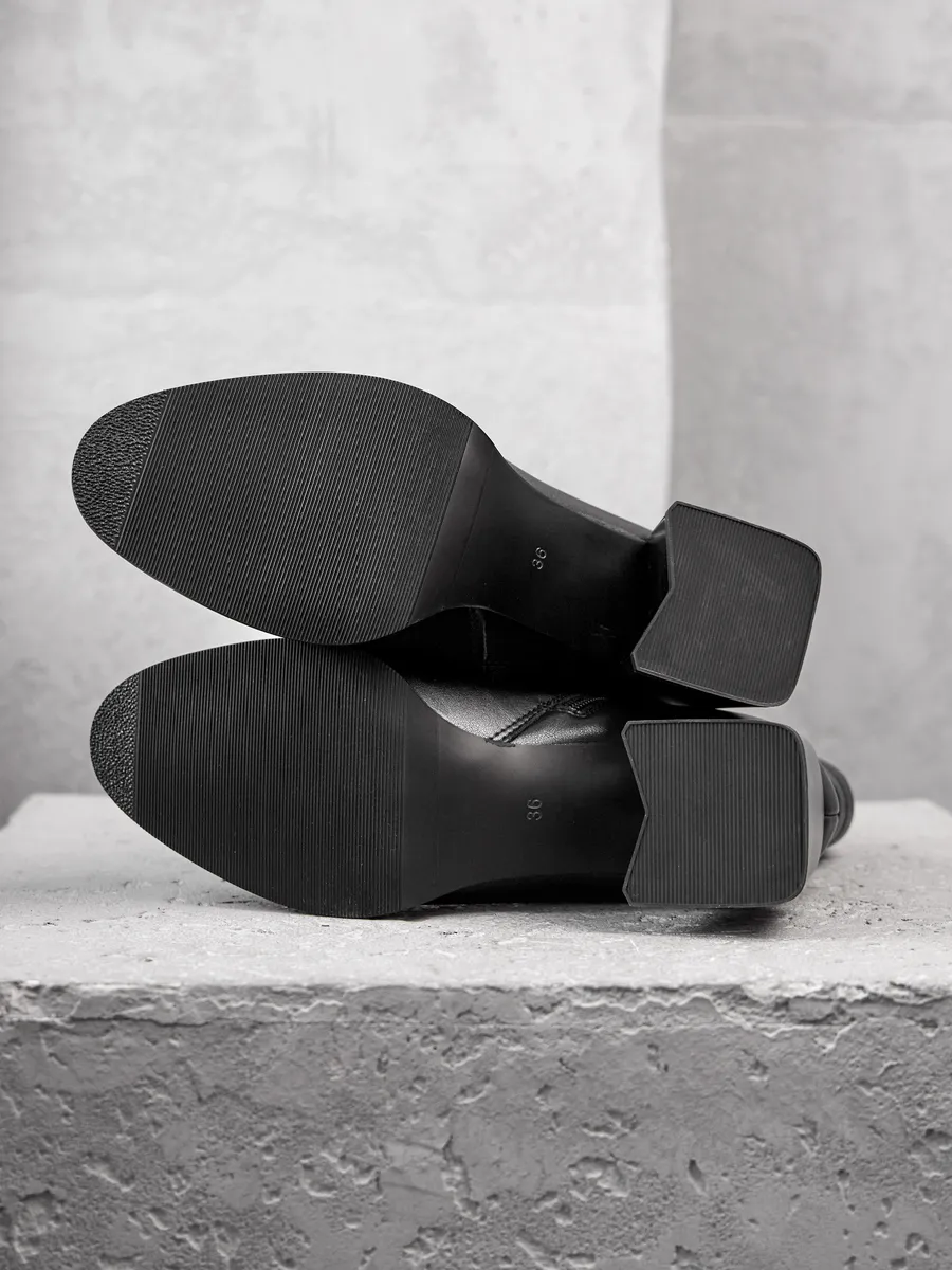 Кожаная поверхность устойчива к износу и не требует сложного ухода, а молния на внутренней стороне делает обувь удобной для узкой и широкой стопы, облегчая процесс надевания. Эти полусапожки отлично сочетаются с платьями, юбками, джинсами и деловыми костюмами, добавляя в образ шарм и элегантность.