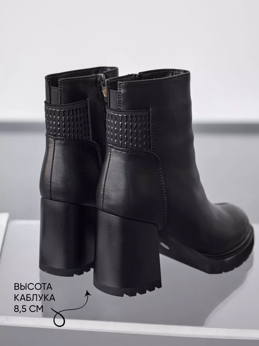 Ботильоны на каблуке выполнены из натуральной кожи и дополнены стильными вставками, придающими модели современный вид. Каблук средней высоты добавляет женственности и элегантности, а удобная колодка позволяет носить обувь весь день без усталости. Черные ботильоны отлично сочетаются с различными нарядами, будь то офисные образы или повседневные варианты, и гармонично вписываются в любой гардероб.
