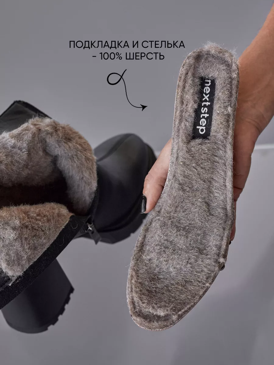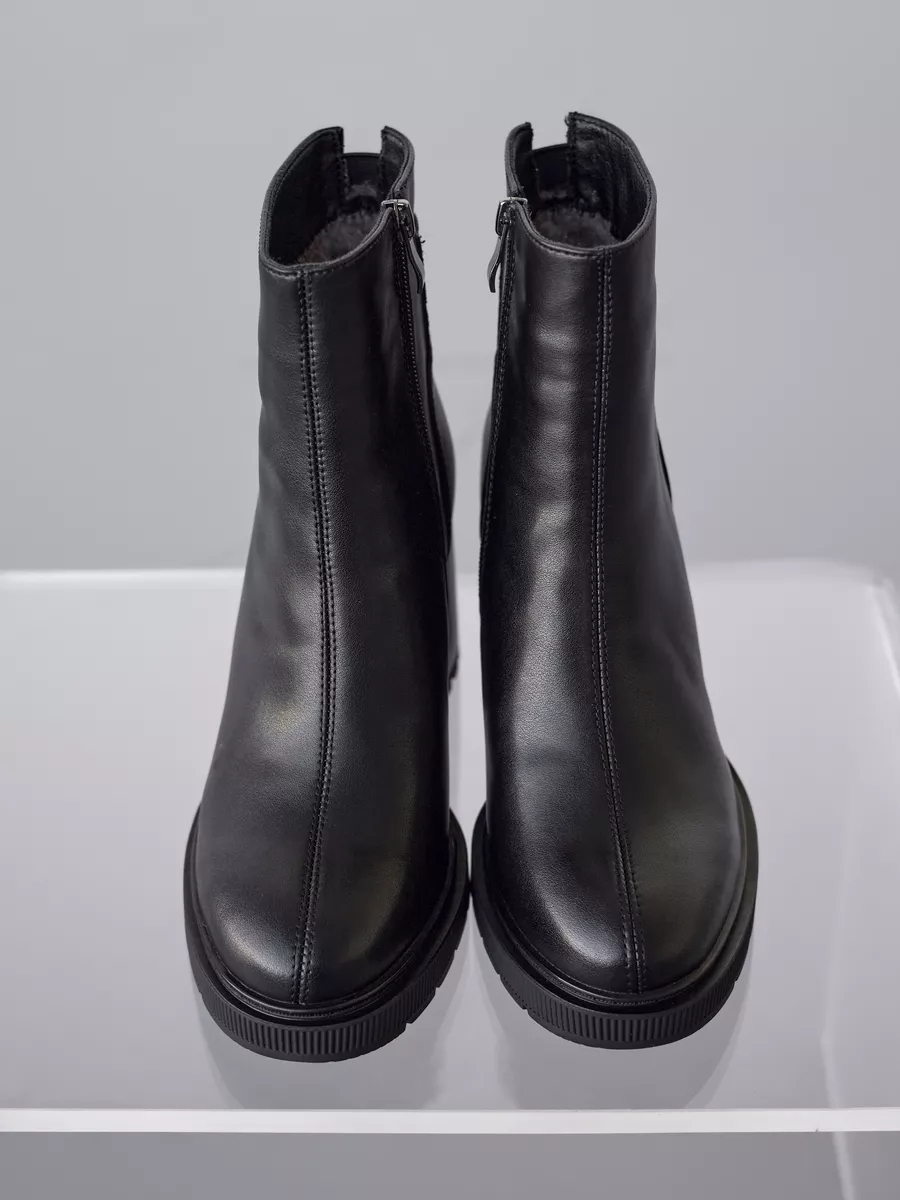 Благодаря натуральной коже, ботильоны не только выглядят стильно, но и обладают долговечностью и устойчивостью к внешним воздействиям. Утепленные шерстяной подкладкой, они обеспечивают тепло и комфорт в морозные дни, что делает их идеальными для зимы. Специальная обработка материалов делает обувь непромокаемой, что особенно важно в условиях влажной и снежной погоды. Боковые молнии облегчают процесс обувания и обеспечивают идеальную посадку.