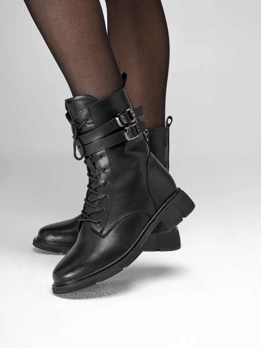 Высокие ботинки с молнией и шнурками для регулировки подъема по ноге создают стильный образ. Классическая модель черного цвета подойдет к любому повседневному, кэжуал, молодежному или праздничному наряду. Подойдут как для подростков, так и для девушек и женщин любого возраста.