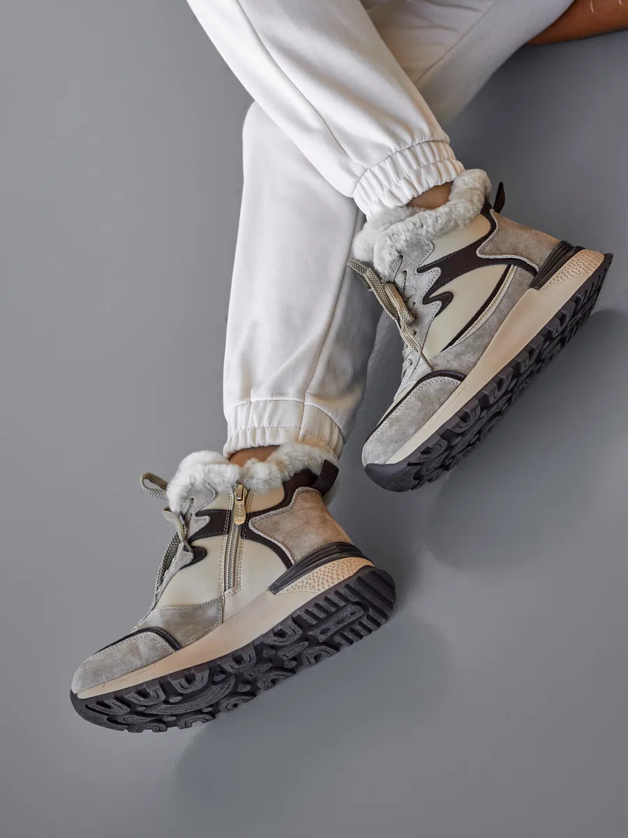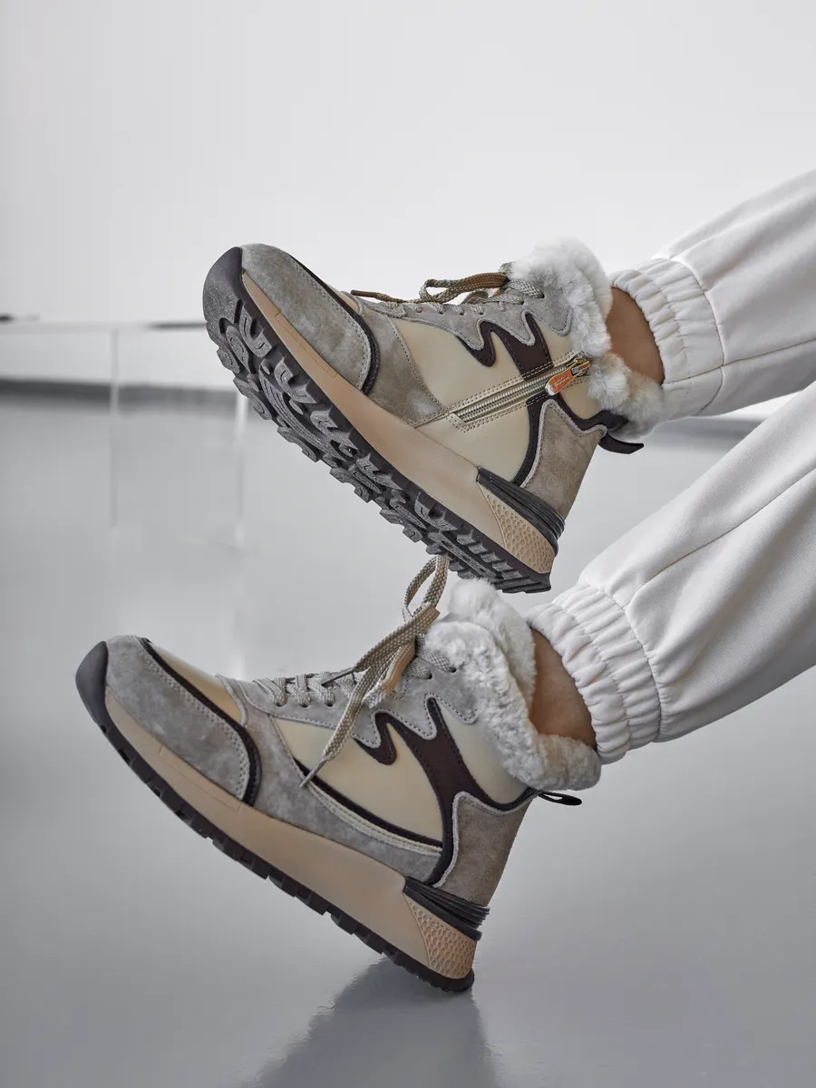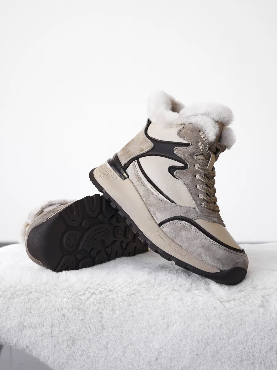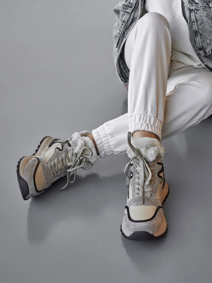 Эти стильные ботинки бежевого цвета подойдут как для женщин, так и для подростков, которые ищут модные и удобные решения на каждый день. Универсальный дизайн позволяет сочетать ботинки с повседневной одеждой — джинсами, леггинсами или даже юбками, что делает их неотъемлемой частью любого зимнего образа. В то же время, спортивные элементы дизайна добавляют динамичности и современности, что особенно актуально для активных людей, ведущих насыщенный образ жизни.
