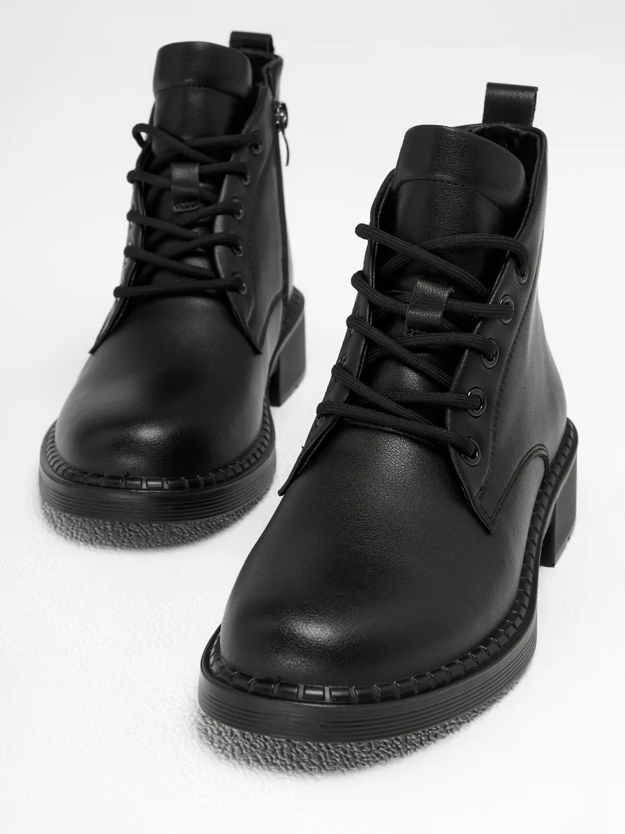 Короткие полуботинки выполнены из мягкой натуральной кожи, она обладает прочностью и хорошей воздухопроницаемостью. В совокупности эти материалы создают оптимальный микроклимат внутри обуви. Шнуровка помогает подстроить обувь под индивидуальные особенности стопы.