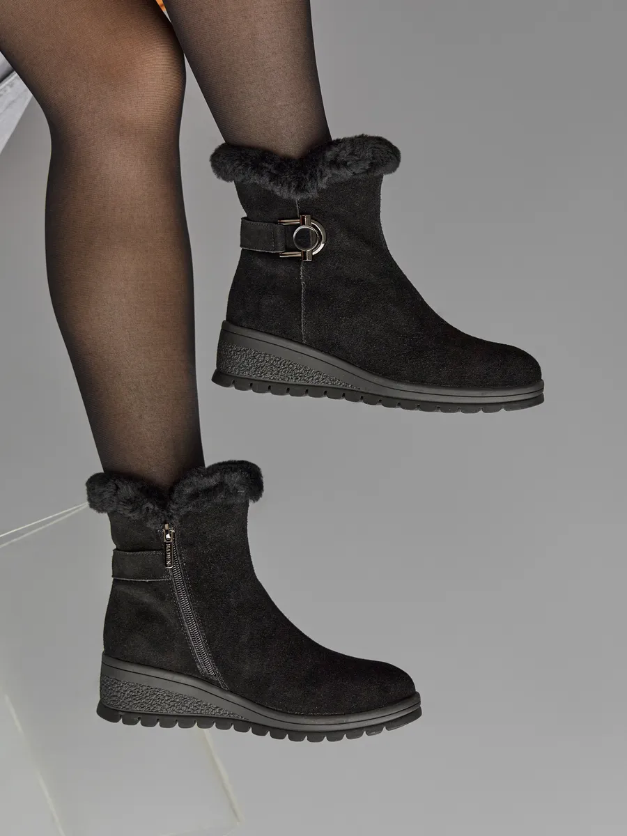 Полусапожки женские зимние замшевые натуральные на танкетке DE093-010