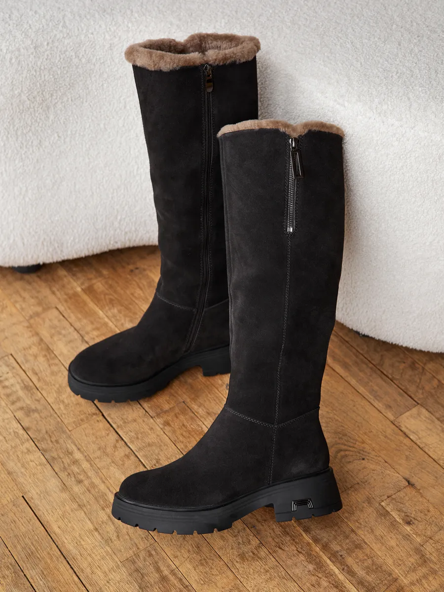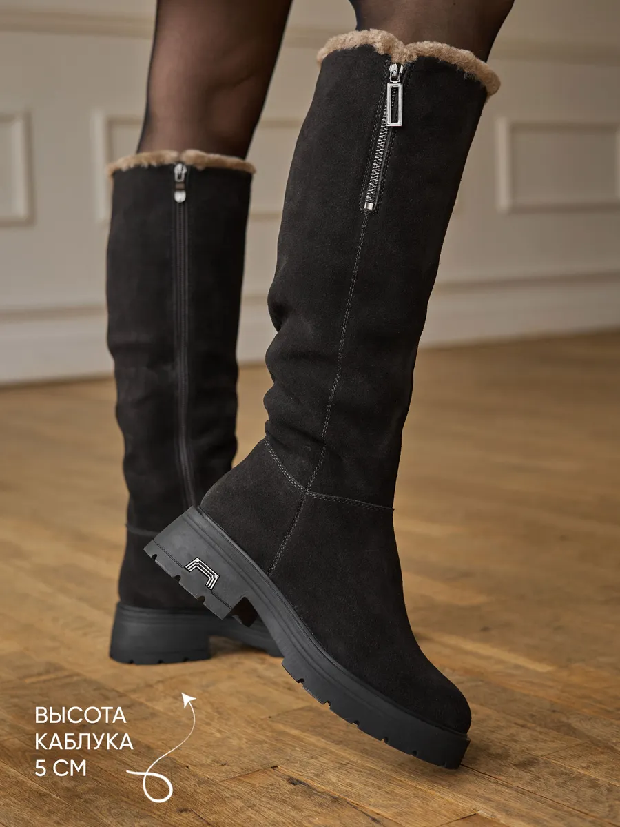 Сапоги выполненные из высококачественной натуральной замши обеспечивают долговечность и комфорт. Длинные сапоги с функциональной молнией на верхней части голенища позволяют увеличить обхват примерно на 4,5 см. Подкладка и съемная стелька из натуральной шерсти гарантирует тепло ваших ног в сильные морозы. Тракторная подошва позволит чувствовать себя устойчиво на скользкой поверхности.