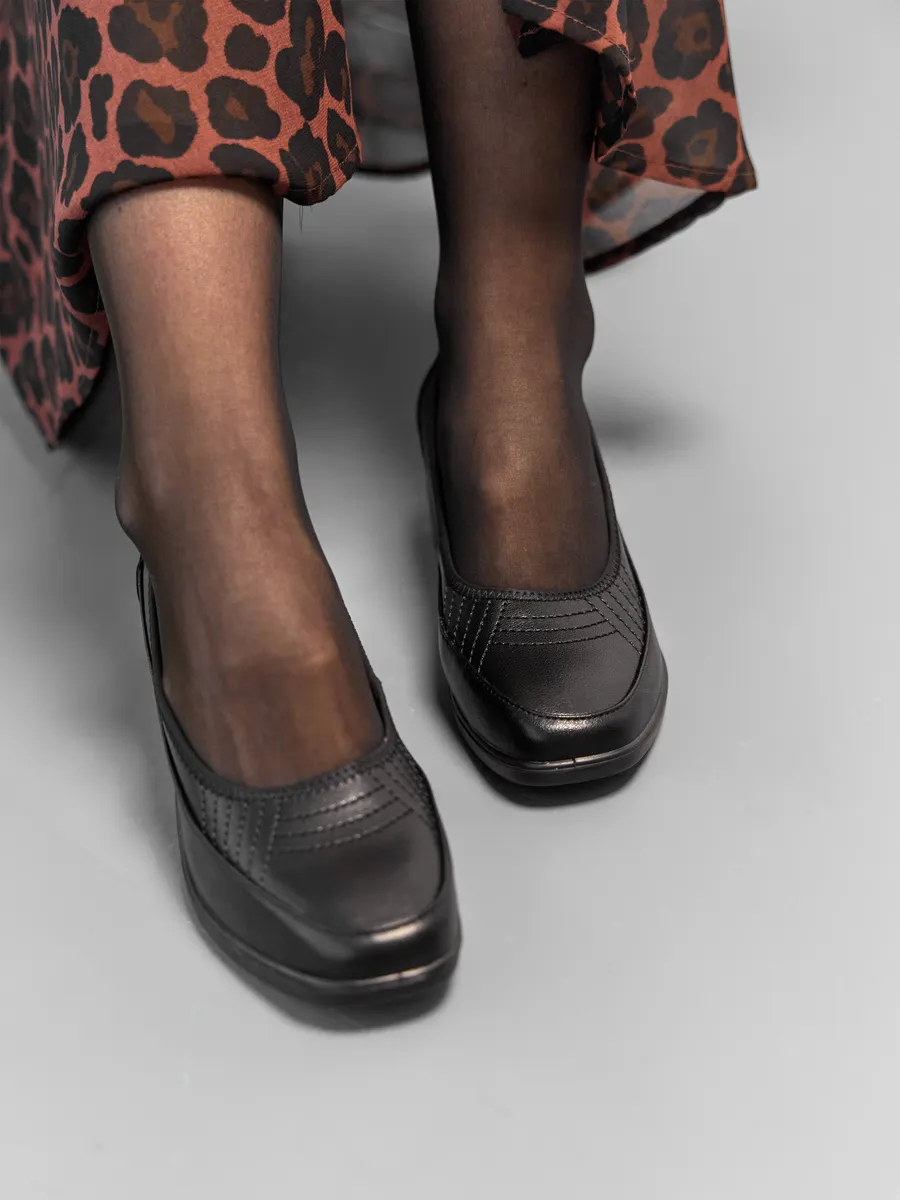 Эти женские туфли из натуральной кожи станут незаменимой частью вашего гардероба, обеспечивая элегантность, комфорт и универсальность для любого сезона. Выполненные в классическом чёрном цвете, они идеально подходят для весны, осени 2025 года. Благодаря сочетанию практичного дизайна и высококачественных материалов, эти туфли легко впишутся в любой образ, будь то деловой, повседневный или праздничный.