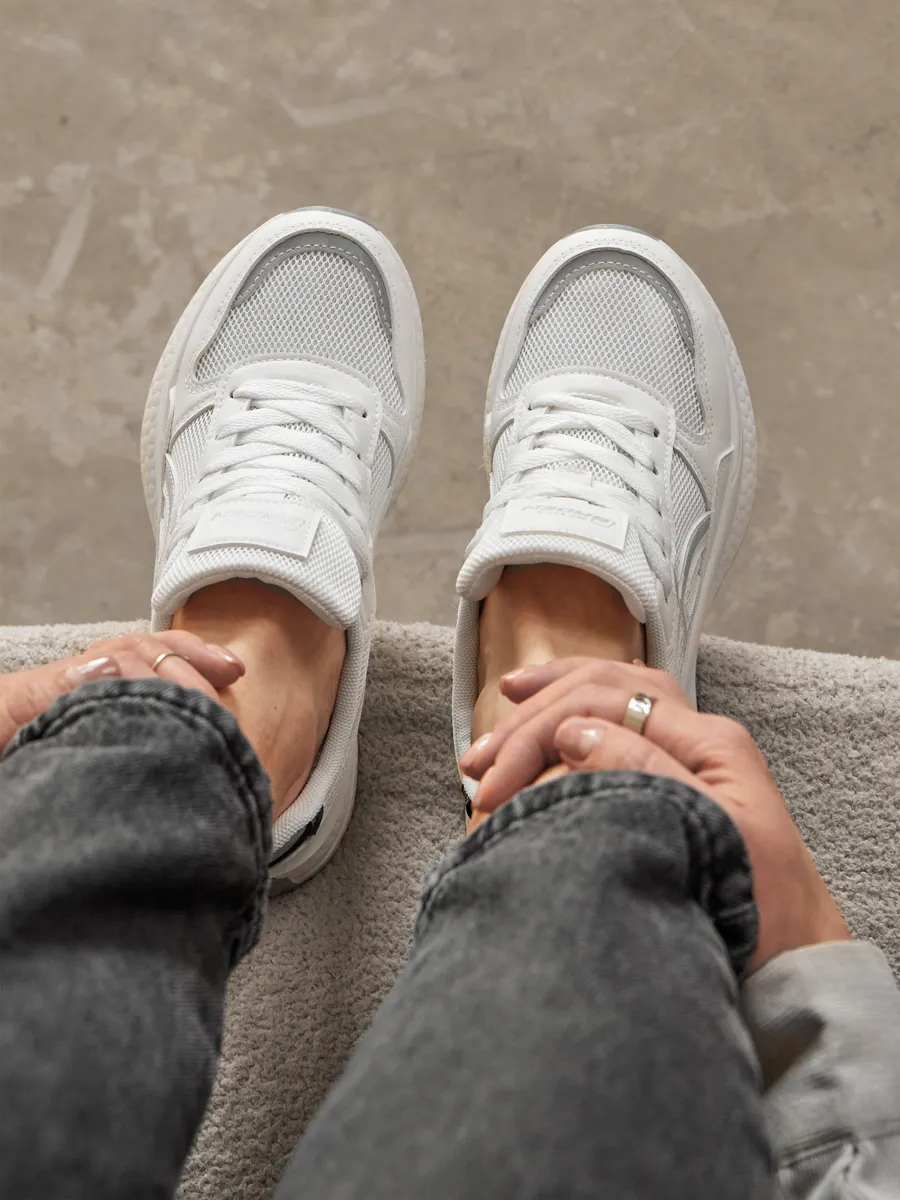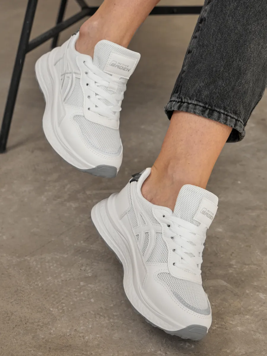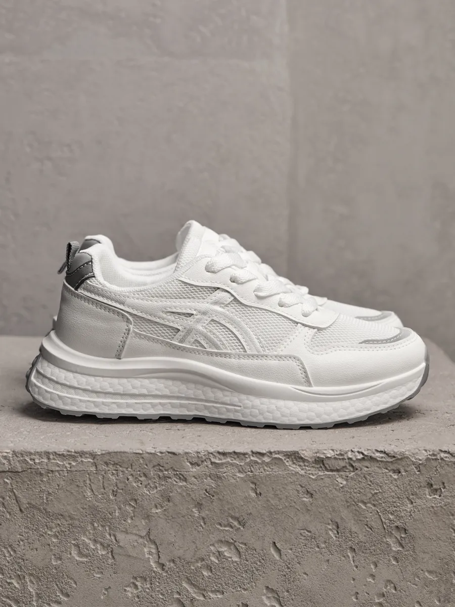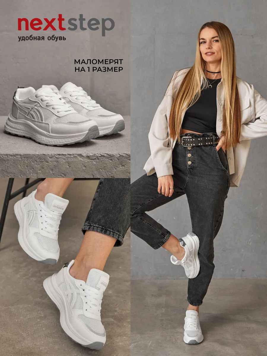 Легкие белые кроссовки маломерят на 1 размер и хорошо подходит на ногу средней и небольшой полноты (7). При выборе размера рекомендуем обращать внимание на длину стельки, указанную в размерном ряде. Выполнены из мягкой натуральной кожи и текстильной сетки - дышащего материала, который быстро принимает форму стопы для максимального удобства. Сетка и подкладка из текстиля обеспечивает хороший воздухообмен даже в жаркую погоду. Имеют мягкую амортизирующую съемную стельку и невероятно лёгкую и гибкую подошву из ПВХ, которая не скользит, прекрасно амортизирует стопу для максимального комфорта и сохраняет здоровье ваших ног, а также поглощает удары стопы при ходьбе, тем самым снимает нагрузку с позвоночника. Так же кроссовки оснащены светоотражающими элементами, в виде вставок.