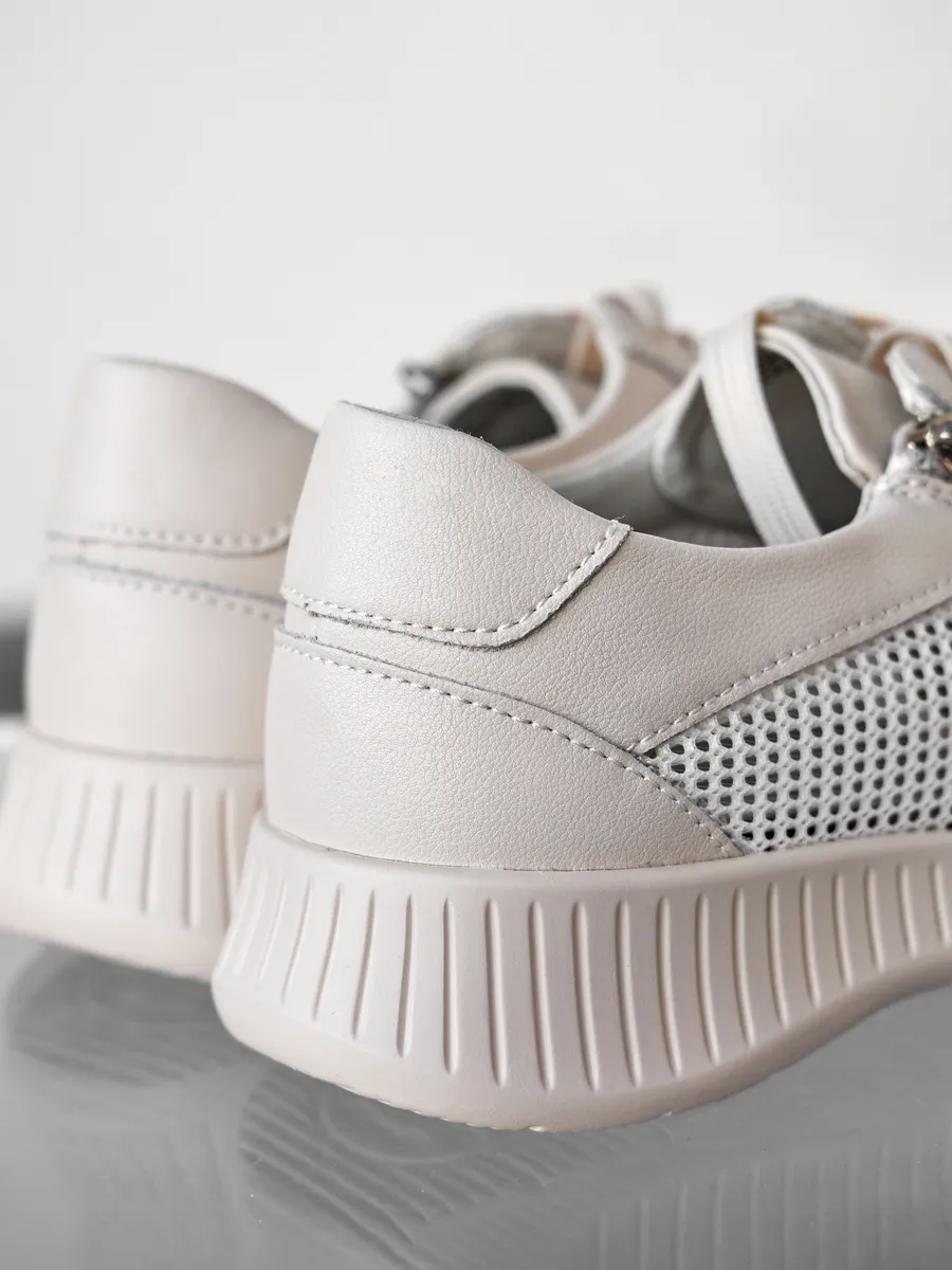 Женские кожаные кроссовки – это идеальное сочетание моды, удобства и актуальных трендов 2025 года. Эта обувь создана для тёплого сезона, обеспечивая лёгкость, воздухопроницаемость и безупречный стиль. Выполненные из натуральной кожи, они гарантируют мягкость и комфорт, а их универсальный белый цвет делает их отличным выбором для женщин и девушек, которые ценят стиль и функциональность.